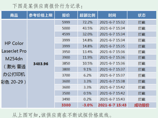 2021年2月4日,国采中心在电子卖场试行台式计算机直购价格监测及采购预警。4月20日将监测品目扩大至便携式计算机、民用空调和激光、喷墨、针式打印机共计6个品目。运行5个月时间,国采中心通过价格监测模型计算出的参考价,在引导供应商合理报价和采购人审慎下单方面发挥了积极作用,取得了初步成效。