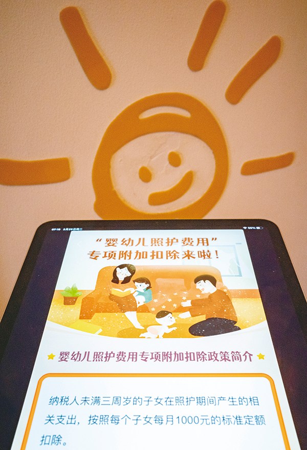 今年财政政策将坚持阶段性措施和制度性安排相结合,减税与退税并举,延续实施部分2021年到期的阶段性减税降费政策,研究出台新的政策举措。我国出台婴幼儿照护费用专项附加扣除政策,从2022年1月1日起实施。图为2022年3月29日,中国“个人所得税”官方应用程序显示出婴幼儿照护费用专项附加扣除政策简介,从当日起可以填报。 中新社记者 侯宇/摄